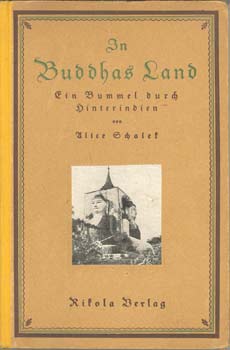 Schalek, Alice: In Buddhas Land. Ein Bummel durch Hinterindien. Wien – Mchn. – Lpz., Rikola 1922. Mit 48 eigenen Aufnahmen (auf Taf.). 242 S., 3 Bl. OHLwd. mit montierter Abb. auf Vorder-Deckel.