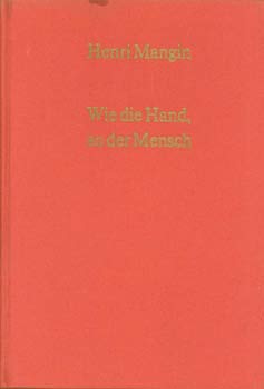 Mangin, Henri: Wie die Hand, so der Mensch. Versuch einer Charakterologie auf Grund erkenntnismäßiger und wissenschaftlicher Erforschung von Linien und Formen der Hand. Intelligenz und Urteil – Berufliche Richtlinien – Medizinische Diagnose – Schicksal und freier Wille. Aus dem Französischen übersetzt von Dr. Ursula von Mangoldt. Zürich, Rascher [1973]. [2. unveränderte Auflage]. Gr.-8°. Mit zahlreichen Hand-Abdrücken bekannter Zeitgenossen, Illustrationen und schematischen Zeichnungen von Marcel Pinloche. 224 S. OLwd.
