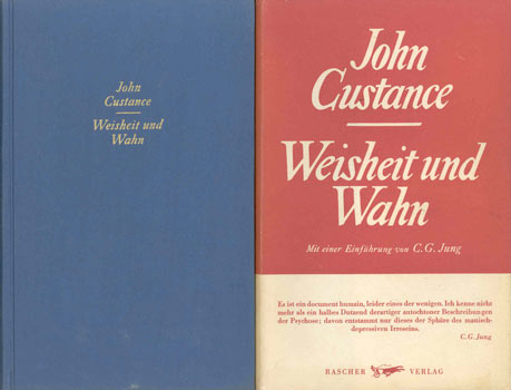 Custance, John: Weisheit und Wahn. Mit einer Einführung von C.G.Jung u. einem Vorwort von Canon L. W. Grensted. Aus dem Engl. Übers. von Dr. R. Bodlander. Zürich, Rascher 1954. XVI, 323 S. OLwd.