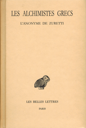 Colinet, Andrée (Texte établi et traduit): Les Alchimistes Grecs. Publiés sous le patronage de l’Union Académique Internationale. Tome X. Les Belles Lettres, Paris 1995. CXVI (116), 438 S., 5 Bl. OPp.