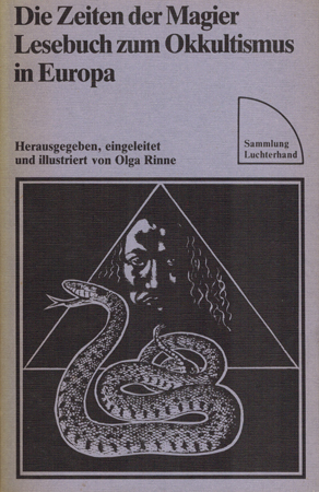 Rinne, Olga (Hrsg.): Die Zeiten der Magier. Lesebuch zum Okkultismus in Europa. Hermann Luchterhand Verlag GmbH & Co KG, Darmstadt und Neuwied 1983. Eingeleitet und illustriert von Olga Rinne. 176 S. illustr. OKarton.