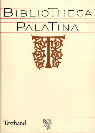 Mittler, Elmar (Hrsg.): Bibliotheca Palatina. Katalog zur Ausstellung vom 8. Juli – 2. November 1986, Heiliggeistkirche Heidelberg. Text- und Bildband. Edition Braus, Heidelberg 1986. 4°. XVI, 552; 328 S. OPp. Bände.