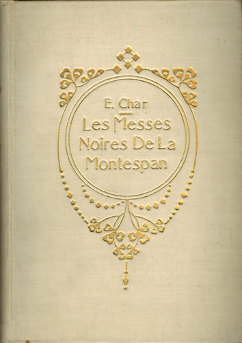 Char, Edmond: Les Messes Noires de la Montespan. Roman historique. Albert Mericant, Paris o.J. [ca. 1910]. Orné de compositions hors texte d’ apres les aquarelles de A. de Partys. 208 S., 2 Bl. Vlgs.-Anz. OLwd. mit Goldprägung.