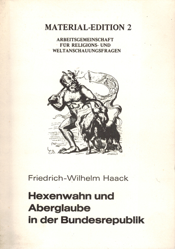 Haack, Friedrich-Wilhelm: Hexenwahn und Aberglaube in der Bundesrepublik. Arbeitsgemeinschaft für Religions- und Weltanschauungsfragen (ARW), München 1978. 3. Auflage. 1 Bl., 52 S., 1 Bl. illustr. OKarton.