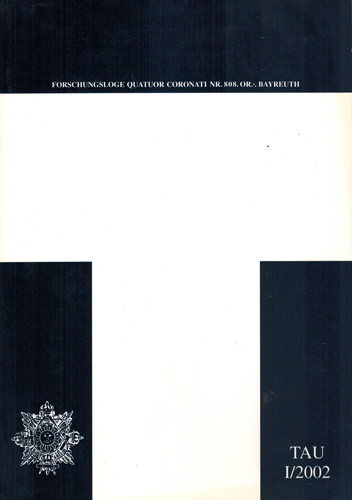 TAU. Zeitschrift der Forschungsloge Quatuor Coronati. Nr. I/2002. Selbstverlag der Freimaurerischen Forschungsgesellschaft Quatuor Coronati e. V., Bayreuth 2002. Gr.-8°. Herausgegeben von Prof. Dr. Hans-Hermann Höhmann. 99 S. OKarton.