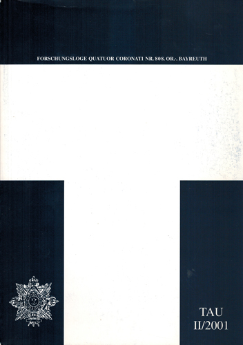 TAU. Zeitschrift der Forschungsloge Quatuor Coronati. Nr. II/2001. Selbstverlag der Freimaurerischen Forschungsgesellschaft Quatuor Coronati e. V., Bayreuth 2001. Gr.-8°. Herausgegeben von Prof. Dr. Hans-Hermann Höhmann. 120 S. OKarton.