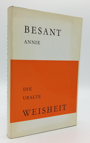 Besant, Annie: Die uralte Weisheit. Theosophical Publishing House Ltd., London / Adyar-Verlag, Graz 1971. 2. Auflage. Neue autorisierte Übersetzung aus dem Englischen von Dora Bauer, Leopold Göbel, Norbert Lauppert u. Frida Schubert. 244 S. OPp. mit Rückengoldprägung und OUmschlag.