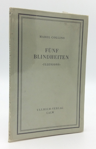 Collins, Mabel [d.i. Minna Cook bzw. Mrs. Keningale (Kenningdale) C.]: Fünf Blindheiten. “Illusions”. Ullrich Verlag, Calw 1960. Deutsche Ausgabe besorgt von Dr. med. H. Breyer. 50 S., (1) Vlgs.-Anz. OKarton.