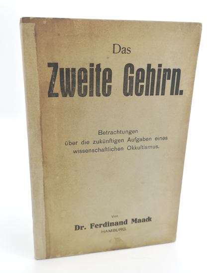 Maack, Dr. Ferdinand: Das zweite Gehirn. Betrachtungen über die zukünftigen Aufgaben eines wissenschaftlichen Okkultismus. Theosophia-Verlag, Hamburg 1921. IX, 47 S. OPappband.