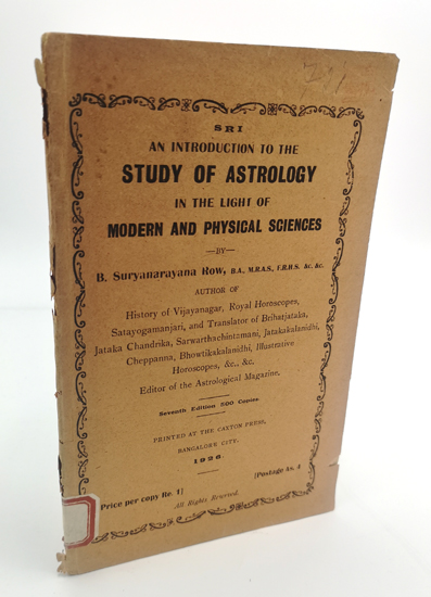 Row, B[anglore] Suryanaraina: An Introduction to the Study of Astrology. In the Light of Modern and Physical Sciences. Caxton Press, Bangalore City 1926. Seventh Edition. 86 S., viii Original brochure.