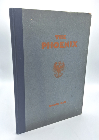 Hall, Manly P(almer): The Phoenix. An illustrated Review of Occultism and Philosophy. Hall Publishing Co., Los Angeles 1931. 2° [403 x 284 mm]. With frontispice [port. of the author], 30 full-page plates and 58 illustr. in the text. 175 S. Blue half cloth binding with orange lettering and phoenix on front cover.