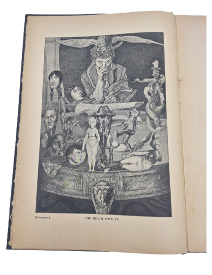Spare, Austin Osman: The Book of Pleasure (Self-Love). The Psychology of Ecstasy. Printed by the Co-operative Printing Society Limited, Tudor Street, EC. Published by the Author, London 1913. 2° [390 x 270 mm]. Introduction by Ernest H. R. Collings. With nine full page halftone illustrations and numerous smaller illustrations. 1 Bl., 1 (Frontispiece), 59 S. Black original cloth binding, lettered across front in white.