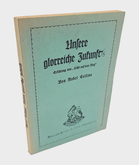 Collins, Mabel [d.i. Minna Cook bzw. Mrs. Keningale (Kenningdale) C.]: Unsere glorreiche Zukunft. Erklärung von “Licht auf den Weg”. Renatus-Verlag, Lorch-Württemberg 1934. 112 S. OKarton.