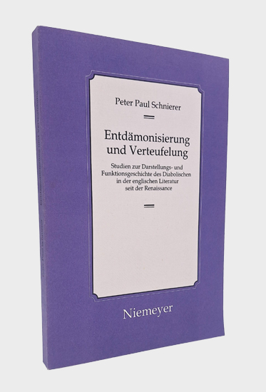 Schnierer, Peter Paul: Entdämonisierung und Verteufelung. Studien zur Darstellungs- und Funktionsgeschichte des Diabolischen in der englischen Literatur seit der Renaissance. Max Niemeyer Verlag, Tübingen 2005. Gr.-8°. Herausgegeben von Bernd Engler, Joerg O. Fichte und Lothar Fietz. VI, 1 Bl., 281 S., 1 (w). OKarton.
