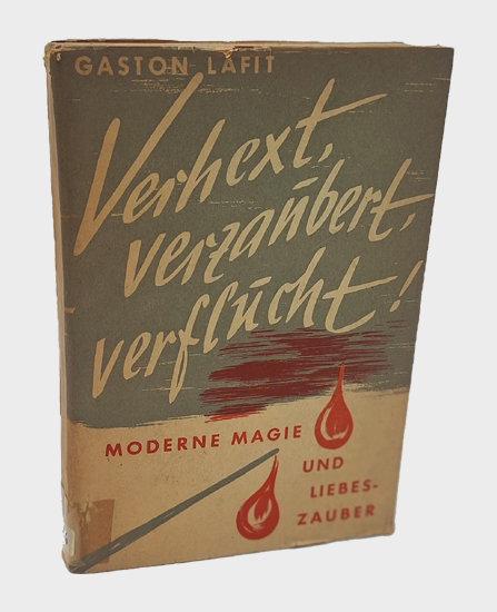 Lafit, Gaston: Verhext, verzaubert, verflucht. Moderne Hexen und Magier. Zauberei und Magie in unserer Zeit – Uralte Formeln und Rezepte in neuer Anwendung – Auch moderne aufgeklärte Menschen glauben daran. Lebensweiser-Verlag, Büdingen-Gettenbach 1952. 172, 1 S. (Inhalt), 3 Bl. Vlgs.-Anz. OKarton.