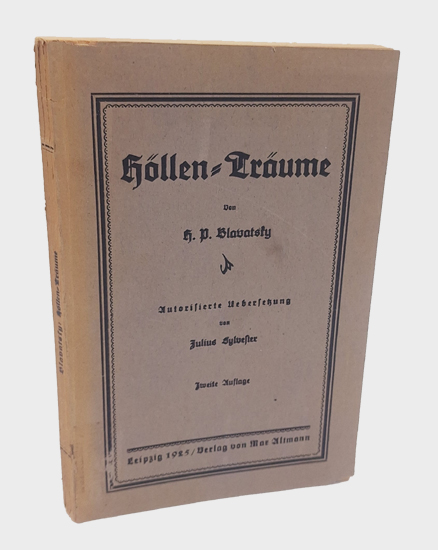 Blavatsky, H[elena] P[etrowna]: Höllen-Träume. Verlag von Max Altmann, Leipzig 1925. Zweite Auflage. Aus dem Englischen übersetzt von Julius Sylvester. 4 Bl., 150 S., 1 Bl. Vlgs.-Anz. OKarton.