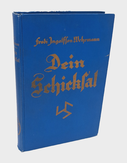 Wehrmann, Frodi Ingolfson: Dein Schicksal. Verlag Herbert Reichstein, Pforzheim 1929. Gr.-8°. VI, 481 S., 5 Bl. Vlgs.-Anz. OLwd. m. Goldprägung.