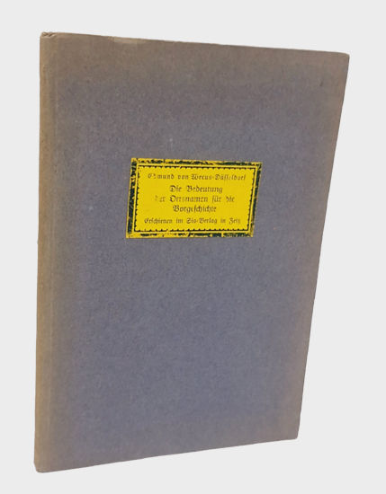 Die Bedeutung der Ortsnamen für die Vorgeschichte. Mit einer Beschreibung und bildlichen Darstellung der germanischen Hund(Hundert)schaft. Sis-Verlag, Zeitz 1920. Gr.-8°. 141, [1] S., 1 S. Vlgs.-Anz. OPappband mit Deckelschild.