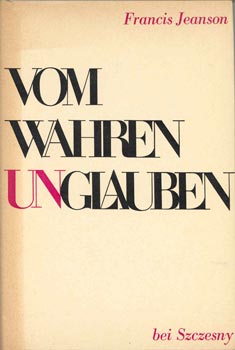 Jeanson, Francis: Vom wahren Unglauben. Aus dem Franz. Übers. von Alfred Zeller. Mchn., Szczesny 1963. 201 S.,1 Bl. Vlgs.-Anz. OLwd.
