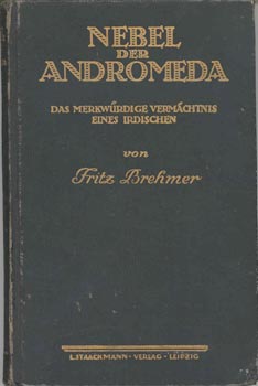 Brehmer, Fritz: Nebel der Andromeda. Das merkwürdige Vermächtnis eines Irdischen. Lpz., L. Staackmann 1920. 6.-10. Tsd. 203 S., 2 Bl. Vlgs.-Anz. OPp.