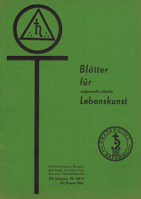 Gregor A. Gregorius (Hrsg.) d.i.: Otto Max Eugen Grosche: Blätter für angewandte okkulte Lebenskunst. XIII. Jahrgang, Nr. 148/149. Herausgegeben (als Privatdruck) von Gregor A. Gregorius. Meister der Loge Fraternitas Saturni Orient Berlin, Berlin 1962. 8°. S. 76-94. OKarton.