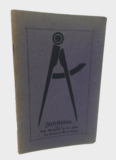 Das Weltgesetz in der Zahl. [Teil] 1. Das Einmaleins der Ewigkeit. Verlag des Lindiabundes. Geschäftsstelle des Lindiabundes: E. Wulf, Groß-Flottbeck bei Altona o.J. [1918]. Mit 4 Figuren und zahlreichen Tabellen im Text. 44 S. Illustr. OKarton.
