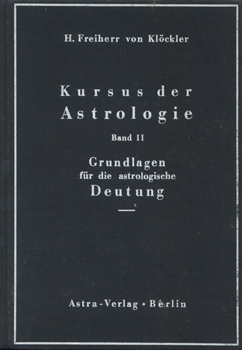 Klöckler, H(erbert) Frhr. von: Kursus der Astrologie. Band II. Grundlagen für die astrologische Deutung. Mit vielen Beispielen und 23 Abbildungen im Text. Berlin 1952. 3., um ein ausführliches Nachwort erweiterte Auflage. 263 S. schwarzer OLwd. mit weißer Prägung.