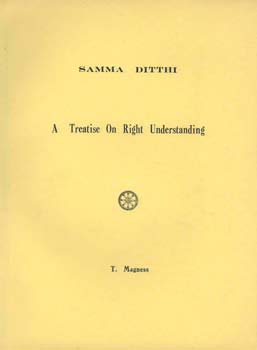 Magness, T.: Samma ditthi. A Treatise On Right Understanding. Bangkok, Thailand, Printed at Aroon Karn Pim Press, Miss Ladda Valya Vorapitaksanond, Printer and Publisher (no date). 4°. With 1 plate. 2 Bl., 122 S. OKart.