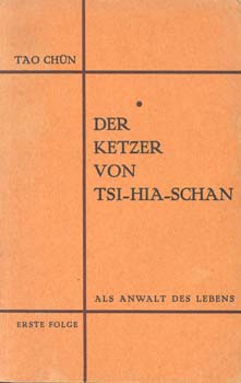 Der Ketzer von Tsi-hia-schan als Anwalt des Lebens. Kleine Vorlesungen im großen Hörsaal [von] Tao Chün (Martin Steinke). I. Folge [von 2 Folgen]. Dünen Verlag, vormals Bremen, z. Z. Schildorst 1948. 1. Auflage. 144 S. OKart.