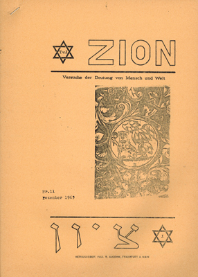 Zion. Versuche der Deutung von Mensch und Welt. Nr. 11, Dezember 1969. Privatdruck (Typoskript) Paul R[üdiger] Audehm, Frankfurt am Main 1969. 4°. 4 Bl., S. 148-166, 2 Bl. geheftete Blätter.