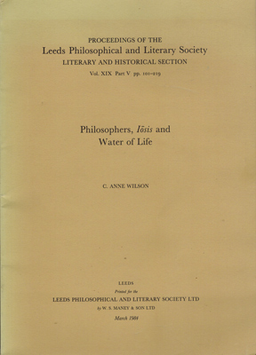 Wilson, C. Anne: Philosophers, Iosis and Water of Life. Leeds Philosophical and Literary Society, Leeds 1984. Gr.-8°. vi, 113 S. OKarton.