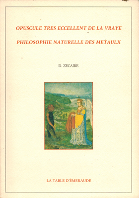 Zecaire, D[enis]: Opuscule tres-eccelent de la vraye philosophie naturelle des metaulx, […]. La Table d’Emeraude, o.O. [Paris] 1990. 1 (w), 4 Bl., 116 S., 1 Bl. illustr. OKarton.