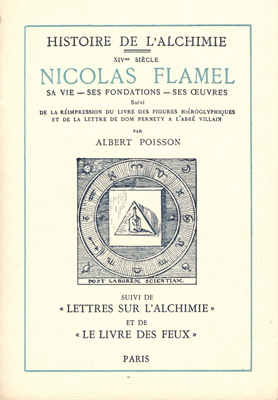 Poisson, Albert: Nicolas Flamel. Sa vie, ses fondations, ses œuvres, suivi de la réimpression du Livre des figures hiéroglyphiques et de la lettre de Dom Pernety a l’Abbé Villain. Gutenberg Reprint, Paris 1981.Préface de A. Poisson. XII, 239 S.; 35 S., 8 Bl., 1 (w), 1 Bl., 1 (w) illustr. OKarton.