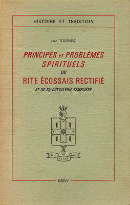 Tourniac, Jean: Principes et problèmes spirituels du Rite Écossais rectifié et de sa Chevalerie Templière. Dervy-Livres, Paris 1969. Mit Abbildungen auf Tafeln. 352 S. illustr. OKarton.