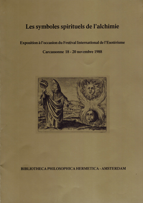 Les symboles spirituels de l’alchimie – Exposition à l’occasion du Festival International de l’Esotérisme. Carcassonne, 18-20 novembre 1988. Bibliotheca Philosophica Hermetica, Amsterdam 1988. 4°. Mit 54 s/w Abbildungen. 143 S., 2 (w) illustr. OKarton.