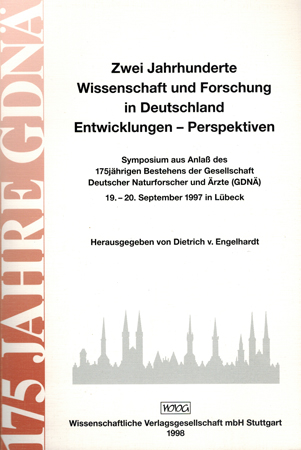 Engelhardt, Dietrich von (Hrsg.): Zwei Jahrhunderte Wissenschaft und Forschung in Deutschland. Entwicklungen – Perspektiven. Wissenschaftliche Verlagsgesellschaft mbH, Stuttgart 1998. X, 284 S., 1 (w) OKarton.