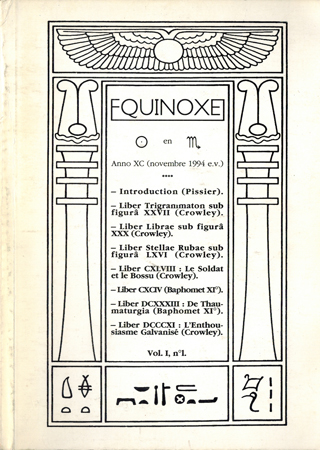 Crowley, Equinoxe Vol. I, N° 1. Revue semestrielle de la mouvance Thélémite.