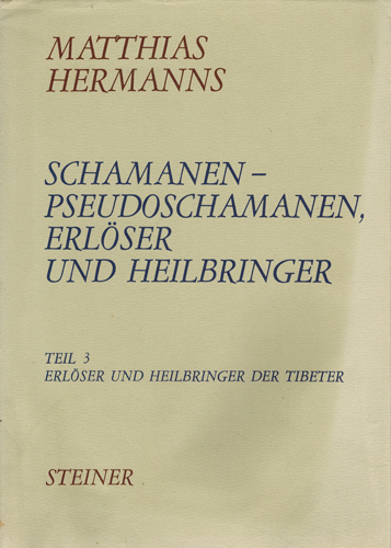 Hermanns, Matthias: Schamanen – Pseudoschamanen. Erlöser und Heilbringer. Eine vergleichende Studie religiöser Urphänomene. Teil 1-3 (in 3 Bdn.). Franz Steiner Verlag GmbH, Wiesbaden 1970. Gr.-8°. XXII, 705; IX, 346; IX, 240 S., 1 (w) OKarton Bände mit OUmschlägen.
