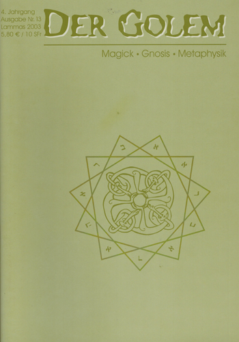 Der Golem. Magick, Gnosis, Metaphysik. (Jahrgang 4, Ausgabe 13). Hadit Verlag, Albersdorf 2003. 4°. 66 S. illustr. OKarton.