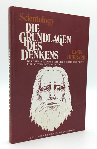 Hubbard, L[afayette] Ron[ald]: Scientology. Die Grundlagen des Denkens. Das grundlegende Buch über die Theorie und Praxis für Scientology – Anfänger. Publications Department, Saint Hill, Denmark 1974. 3. Auflage. 155 S., 2 Bl. OLwd. mit Rückengoldprägung und OUmschlag.
