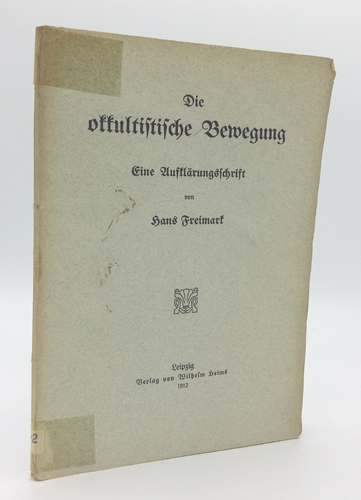 Freimark, Hans: Die okkultische Bewegung. Eine Aufklärungsschrift. Verlag von Wilhelm Heims, Leipzig 1912. 79 S., 5 S. Vlgs.-Anz. OBroschur.