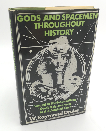 Drake W. Raymond: Gods & Spacemen Throughout History. Neville Spearman, London 1975. With 19 b/w illustrations on art paper. 264 S. Green leatherette binding with gilt spine and original dust jacket.
