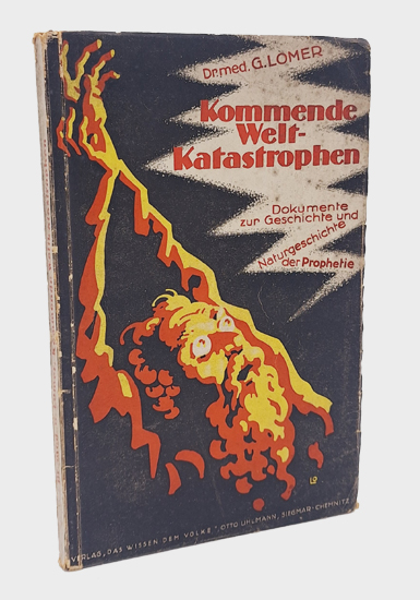 Lomer, Dr. med. Georg [Heinrich]: Kommende Weltkatastrophen. Beiträge zur Naturgeschichte der Prophetie. Verlag “Das Wissen dem Volke” Otto Uhlmann, Sigmar-Chemnitz 1921. 1.-5. Tausend. 93, [1], 2 S. Vlgs.-Anz. Illustr. Okarton.