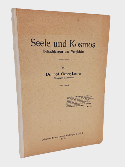 Lomer, Dr. med. Georg [Heinrich]: Seele und Kosmos. Betrachtungen und Vergleiche. Johannes Baum Verlag, Pfullingen in Württ. 1920. 52, [1] S. OBroschur.