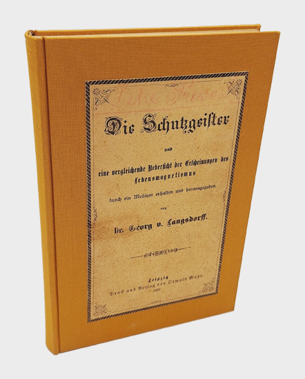 Langsdorff, Dr. Georg von: Die Schutzgeister und eine vergleichende Uebersicht der Erscheinungen des Lebensmagnetismus durch ein Medium erhalten und herausgegeben. Druck und Verlag von Oswald Mutze, Leipzig 1897. XL, 278 S., 1 (Errata), 1 Bl. Vlgs.-Anz. Neuerer priv. Lwd. m. montiertem OUmschlag a.d. Deckel.
