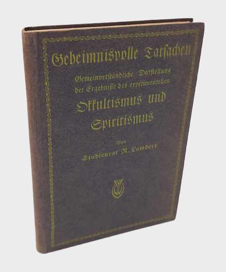 Lambert, Rudolf: Geheimnisvolle Tatsachen. Gemeinverständliche Darstellung der Ergebnisse des experimentellen Okkultismus und Spiritismus. Süddeutsches Verlagshaus G.m.b.H., Leipzig 1922. 7.-11. Tausend. Mit Bildern. 224 S. OPappband.