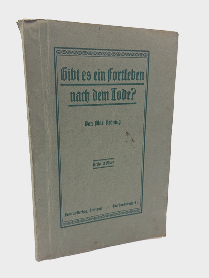 Gibt es ein Fortleben nach dem Tode? Zentral-Verlag, Stuttgart o.J. [um 1920]. 93 S., 3 S. Vlgs.-Anz. OKarton.
