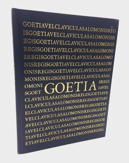 The Book of the Goetia of Solomon the King. Translated into the English tongue by a dead hand and adorned with divers other matters germane delightful to the wise. The whole edited, verified, introduced and commented by Aleister Crowley. Magickal Child Publishing, New York City 1989. 4°. [285 x 220 mm]. With numerous figures on the frontispiece and 2 plates (1 plate on p.[12], and 1 plate between p.38 & 39). [2] w., IX, [1], 65, [1], [8] publisher’s advertisements, [6] w. S. Original black leatherette binding with gilt-stamped spine title and gilt-stamped cover.