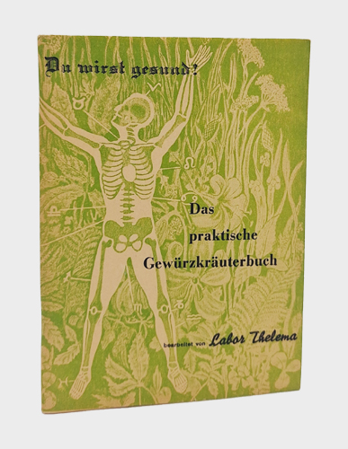 Publikation des “Schweizer O.T.O.”. – Umschlag Titel: Du wirst gesund! Das praktische Gewürzkräuterbuch. – “Labor Thelema ist eine Institution für naturwissenschaftliche Studien und Forschungen und Eigentum der Psychosophischen Gesellschaft in der Schweiz” (Umschlag). – Gutes Exemplar. Selten.