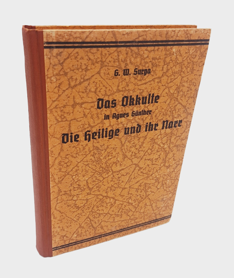 Surya, G. W. (Ps.) = Demeter Georgiewitz-Weitzer: Das Okkulte in Agnes Günther. “Die Heilige und ihr Narr” erläutert an zahlreichen, ähnlichen wohlbeglaubigten Tatsachen und eigenen übersinnlichen Erlebnissen des Verfassers. Renatus-Verlag, Lorch (Württemberg) 1929. Zweite, verbesserte und erweiterte Auflage. 220 S., 8 Bl. Vlgs.-Anz. OHLwd.